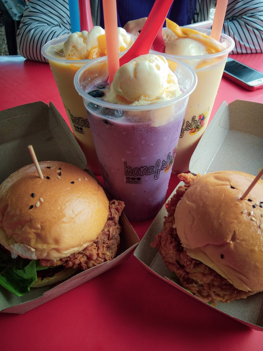 Good place to have quick snacks. Ordered avocado/ strawberry/ banana juice (real juice not cordial). Had taste harimau burger, ok laaa..